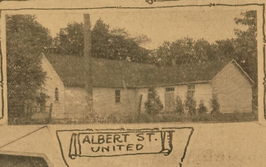 The church, located at the corner of Albert St. and Olive Avenue traces its roots back to the South Oshawa Methodist Church, which was first established in 1910. It grew from the efforts private citizens and the minister of Simcoe St. Methodist Church, with an aim to establish a missionary for the newcomers to Oshawa who had settled in this neighbourhood. Rev. W. H. Truscott took charge of the work in 1913, and a small, white building was erected for this new mission in 1914.